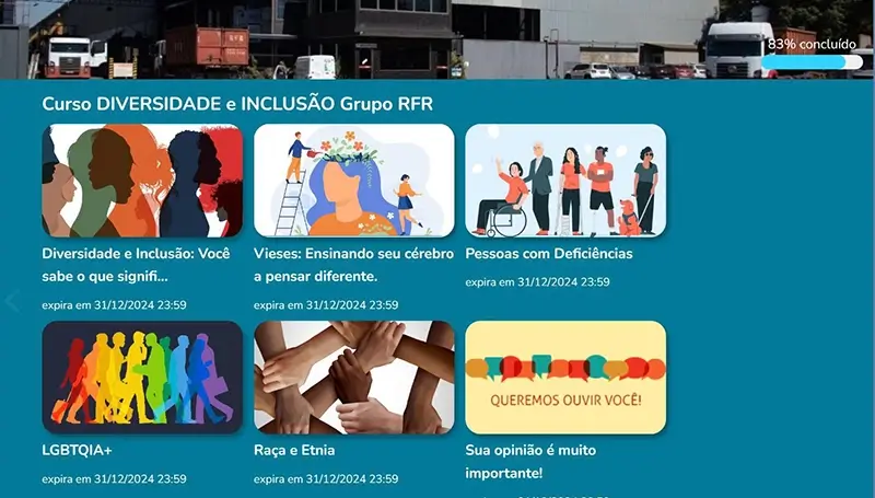 Página de apresentação do curso/treinamento a distância DIVERSIDADE E INCLUSÃO para colaboradores do Grupo RFR